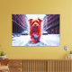 Toile Chien rouge marchant dans la rue d'hiver enneigée