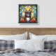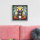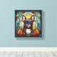 Chien de taureau noir et blanc artistiquement fait dans un faux verre vitré mode toile imprimé.