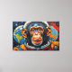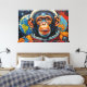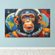 This artwork by Otis Porritt presents a striking portrait of a chimpanzee encased in a space helmet. Rendered with bold, impasto-like textures, the primate's face bursts with a kaleidoscope of vibrant hues, from deep blues and purples to fiery oranges and reds. The reflective visor frames its intense gaze, while the surrounding cosmos explodes with swirling nebulae and distant planets in a dynamic interplay of color and light. The rich, layered application of color creates a powerful, almost tactile visual experience, capturing a sense of wonder and exploration.