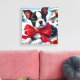 Toile Chiot avec Bow rouge sur la scène de Noël enneigée