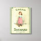 Antique Cacao Sucard — Chocolat Sucard de France Ils ont certainement aimé leur chocolat dans la France victorienne. Cacao Sucard signifie Chocolate Sugar. La petite fille antique vous lance un baiser, un baiser au chocolat. La petite fille vintage adore le chocolat. L'image à l'ancienne a été imprimée à l'origine sur une boîte de chocolat de 1900—publicité vintage pour le chocolat. L'arrière - plan est en vert antique et blanc antique, tandis que la petite fille est debout, envoyant un baiser à votre façon. L'image à l'ancienne est une petite fille brune aux cheveux portant sa boîte de chocolats. Elle porte une jolie petite robe bleue et rose. C'est l'art publicitaire vintage parfait pour les amateurs de chocolat.