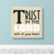 Cette jolie toile enveloppée chrétienne présente les mots "Faites confiance au Seigneur" avec tout votre coeur sur un fond de parchemin. La typographie est noire à l'exception du mot LORD qui est en blanc. C'est une jolie toile de déclaration pour votre maison chrétienne. Copyright Kathy Henis