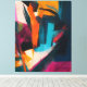 Bold planes of color collide and converge in Chromatic Crosscurrents, an abstract composition driven by motion, contrast, and layered energy. Vivid teal, magenta, and molten orange slice through deep shadowed forms, creating a sense of tension balanced by luminous negative space. Expressive brushwork and sharp directional lines evoke movement and transformation, making this canvas print a striking focal point for modern interiors, creative studios, or contemporary collections.