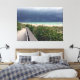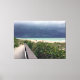 Sur la photo originale de ZoeSPEAK sur cette toile Imprimer, des nuages d'orage assombrissent le ciel sur les eaux aquatiques du golfe du Mexique alors qu'une tempête de pluie approche la plage presque vide. Quelques brasseurs se dirigent vers la promenade à travers les raisins de mer et autres verdure le long du rivage.