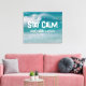 Texte "Stay Calm" sur une vague océanique turquoise.