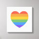 Cette oeuvre présente un coeur rayé arc-en-ciel coloré.