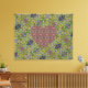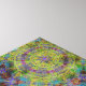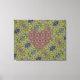 Une forme cardiaque vibrante se distingue sur fond de motifs kaléidoscopiques verts et bleus, créant un contraste visuel captivant. Des motifs géométriques complexes remplissent l'espace, combinant des cercles colorés et des formations étoiles.