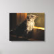 Cette toile enveloppée d'art de la nature présente la photographie d'un bébé oiseau gris qui a volé dans le garage et est très confus sur la façon de voler en arrière. Ici, il regarde par la fenêtre, se demandant si c'est la voie à suivre. La fin heureuse est qu'il a finalement volé hors de la porte du garage. Ses jolies plumes grises et noires sont éclairées par la lumière du soleil qui s'écoule, tout comme le rebord de la fenêtre en bois marron. Quel merveilleux cadeau pour un ornithologue !
