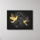 Colibris de bijoux en noir et or sur arrière - plan gris décoré de plantes. Bijoux. Oiseau doré. Oiseau d'or.