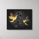 Colibris de bijoux en noir et or sur arrière - plan gris décoré de plantes. Bijoux. Oiseau doré. Oiseau d'or.