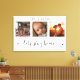 Ce magnifique tableau mural en toile présente un magnifique collage photo à trois images présentant des souvenirs chéris, orné du message sincère "Restons chez nous". L'élégant design noir et blanc, combiné à un script exquis et à une typographie d'impression, crée une pièce sophistiquée et durable qui complètera n'importe quel style intérieur. Personnalisez-le avec votre nom de famille. Créé par Simply Farmhouse Press.