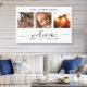 Ce magnifique tableau mural en toile présente un magnifique collage photo à trois images présentant des souvenirs chéris, orné du message sincère "Bienvenue à notre histoire". L'élégant design noir et blanc, combiné à un script exquis et à une typographie d'impression, crée une pièce sophistiquée et durable qui complètera n'importe quel style intérieur. Personnalisez-le avec votre nom de famille. Créé par Simply Farmhouse Press.
