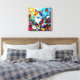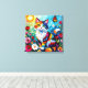 A sweet canvas wall art with a cute illustration of a colorful abstract cat surrounded by flowers, butterflies and the sun in a paper quilling impasto style.