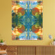 Des couleurs vives se fondent dans un motif symétrique abstrait aux formes circulaires et organiques. Un mélange de blues, d'oranges et de verts crée un effet visuel dynamique et harmonieux.
