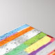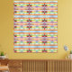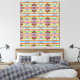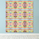 Des bandes verticales colorées et des motifs géométriques créent un design symétrique complexe. Différentes nuances de bleu, vert, rouge et jaune se complètent dans le motif extensible.