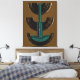 Original numérique abstrait, cette pièce associe des textures tactiles rappelant les pinceaux et des formes de cercles concentriques à un trait vertical audacieux de couleur sarcelle pour créer une composition sculpturale moderne. Les ors chauds et les ocres contrastent avec la sarcelle froide pour produire une palette raffinée dans l'esprit du milieu du siècle qui convient bien aux intérieurs contemporains et éclectiques.