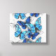 Vertical composition of réalistes, blue and white morpho butterflies on gray textured background. Morphine bleu.