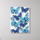 Vertical composition of réalistes, blue and white morpho butterflies on gray textured background. Morphine bleu.
