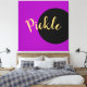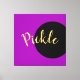 Ce design modèle amusant présente un texte "Pickle" de script jaune centré, festif et chaud contre devant un cercle noir centre et arrière - plan vif violet de raisin. Le texte peut être personnalisé.