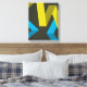 Illustration abstraite urbaine, cool, unique, tendance et urbaine, art motif aux formes géométriques qui s'écoulent dans l'espace tridimensionnel aux couleurs bleu et jaune. OEuvre graphique moderne et de couleur vive