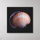 Une photo à vie morte de coquillages de couleur blanche et pêche, avec un bordeaux à l'intérieur. Les obus ont été photographiés sur un arrière - plan noir. Copyright ©Kimberly J Tilley.