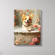 Corgi Bubble Bath Joy by Nicole Cossairt is a heartwarming and whimsical fine art print that celebrates the cheerful spirit of one of the world’s happiest dogs. This delightful painting captures a smiling corgi enjoying a bubbly soak in a vintage clawfoot tub surrounded by soft pastel flowers and charming wallpaper. Every detail — from the glistening bubbles to the joyful sparkle in the corgi’s eyes — brings warmth, laughter, and charm to any room.