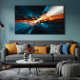 A vibrant explosion of energy where blue and orange tones collide in a unique visual spectacle. Perfect for those looking to transform their space with modern art that evokes movement, intensity, and emotional depth.