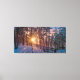 Toile Coucher de soleil dans la pinède enneigée avec ray