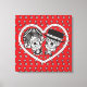 Dia de los Muertos (Jour des Morts) couple crâne de sucre sur un coeur rouge avec des fleurs blanches.