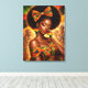 Un portrait afro-centré saisissant d'une femme noire radieuse parée de motifs et de bijoux vibrants d'inspiration africaine. Son nœud audacieux et ses boucles d'oreilles représentant le continent africain célèbrent la fierté et la beauté culturelles. Une lumière dorée riche illumine son teint impeccable tandis que des figures ancestrales émergent doucement en arrière-plan, représentant l'héritage, la mémoire et la chaîne ininterrompue de l'héritage. Cette pièce honore l'identité, la force et la beauté de l'expression culturelle africaine.