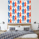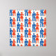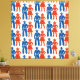 A bold, symmetrical pattern featuring stylized cowboys in blue and cowgirls in red, arranged in alternating rows and columns. Each figure is rendered with vintage flair—wide-brim hats, boots, holsters, and flared skirts—evoking the spirit of mid-century Americana. The design’s rhythmic repetition and strong color contrast create a dynamic visual cadence, celebrating Western iconography with editorial clarity and nostalgic charm.
