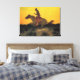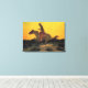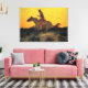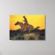 Toile Cowboy Ouest sauvage à cheval contre le coucher du