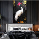Elevate your space with a captivating canvas print showcasing an elegant crane illustration, a harmonious blend of artistic creativity and timeless symbolism. At the heart of the design stands a serene white crane, its elongated neck and delicate plumage depicted with a painterly grace and sculptural finesse. Accentuated by a vivid red crown and striking pink crest, the crane resonates with the iconic red-crowned species celebrated in East Asian art.