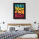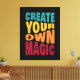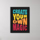 Design de typographie de style rétro coloré avec la citation inspirante "Créez votre propre magie." Parfait pour les rêveurs, les créatifs et tous ceux qui croient en la positivité et l'expression de soi. Un choix idéal pour les t-shirts, les affiches, les peintures murales, les autocollants et autres produits imprimés sur demande.