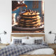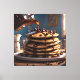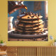 Une pile de crêpes servie avec des chips au chocolat et du sirop.