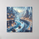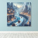 Ce monde de glace cristalline dans une ère de glace futuriste a une architecture cristalline délicate et des traîneaux futuristes voyageant à travers les eaux glacées de cette ville sur cette oeuvre d'art de toile.