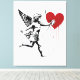Un concept moderne sur Cupid, mais au lieu d’un arc et d’une flèche, il tient une boîte de peinture aérosol, marquant un coeur sur un mur. Le design du pochoir est simple mais frappant, avec une atmosphère rebelle et romantique.