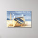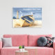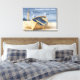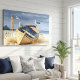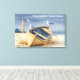 Classic coastal wrapped canvas featuring a weathered golden rowboat resting on a sandy beach. With a lighthouse and happy seagulls, this artwork captures the peaceful essence of seaside living.