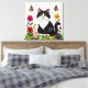 Toile Cute Black and White Cat, Flowers and Butterflies