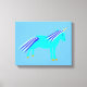 Cette impressionnante impression de toile ferait une belle impression pour le mur d'une chambre de pépinière. Le design présente une image art numérique d'une mignonne licorne de bébé bleu magique. Le corps principal de la licorne est bleu et la crinière et la queue sont deux nuances différentes de bleu. La licorne a des sabots dorés et une corne d'or brillante au-dessus de sa tête. Il a un oeil bleu en forme de losange. La licorne a un grand sourire sur le visage.