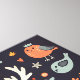 Ce design présente un adorable Fantôme fantaisiste aux motifs fantaisistes en feuilles et fleurs d'automne. Le Ghost se trouve au centre, entouré d'éléments d'automne tels que des glands, des cônes de pin, des feuilles colorés, des pommes et des baies. Un oiseau mignon apparaît également, ajoutant à l'atmosphère boisée douillette. L'illustration présente une palette de couleurs douces et feutrées d'oranges, de marron, de rouges et de bleus, évoquant l'atmosphère chaleureuse et rustique de l'automne. Le mot "Automne" est écrit dans un script ludique en bas, complétant la conception.