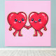 A cute and cheerful illustration featuring two heart-shaped cartoon characters holding hands. With playful facial expressions and charming details, this design brings warmth and joy in a friendly mascot style. Perfect for mugs, stickers, kids products, tote bags, and thoughtful gifts that express love, friendship, and happiness.