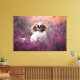 This cute Getty Images photo features a Pekingese breed puppy sitting in pink flowers.