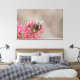 Grande toile moderne avec une abeille, sur des fleurs roses avec un arrière - plan taupe taché. Personnalisez la taille en fonction de votre décor maison.