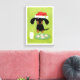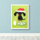 Noël du chien Wiener. Illustration d'art amusante d'un Dachshund noir et bronzé portant un chapeau de Père Noël assis devant un verre de lait et une assiette de biscuits de vacances gelés. Une impression de toile amusante pour quiconque aime un Doxie. Visitez le Doodle World de Jenn pour encore plus de produits mettant en avant ce design original de chien weenie. ©Jenn Inashvili
