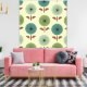 Un motif moderne du milieu du siècle de fleurs abstraites de pissenlit sur un arrière - plan jaune.