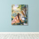 Entre 1888 et 1892, Renoir peint un certain nombre d'oeuvres dans lesquelles la même paire de filles : la blonde portant une grenouille blanche et la brune rose, se livrent à des passe-temps paisibles. Ici, ils ramassent des fleurs. Ces scènes de genre intimes célèbrent l'innocence des jeunes.