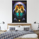Daria Cyborg Queen est mon premier portrait humanoïde femelle complètement fractal. Le portrait est couvert d'un livre de science-fiction rétro ou d'un poster de film avec la reine au centre, un titre au-dessus d'elle et une légende en dessous d'elle. Le visage de Daria est composé d'un crâne métallique en cuivre et d'un visage organique bleu inférieur qui comprend un nez à l'aspect mécanique, des yeux cybernétiques et le mécanisme de serrage du crâne. En haut de sa tête, on peut voir à travers la partie transparente de son activité électrique qui coïncide avec son cerveau cynétique avancé. Sur les côtés de son visage et autour de son dos de tête se trouve un manteau partiellement métallique comme un vêtement pour lui donner l'apparence d'une règle suprême ; avec un collier éclairé étoile comme un élément d'accent. Puis pour l'arrière - plan il y a une grande fractale floue pour mettre en valeur le portrait de son visage. Daria Cyborg Queen se compose de 169 couches dont 59 fractales ont été utilisées pour créer ce portrait. 30 fractales ont été utilisées pour créer les yeux, les sockets oculaires, les sourcils et les cils ; 1 fractale pour les lèvres ; 6 fractales pour le nez et la structure de soutien ; 2 fractales pour le visage ; 7 fractales pour le crâne ; 5 fractales pour le vêtement ; 2 fractales pour le collier ; 1 fractale pour l'arrière - plan ; 5 fractales pour des accents supplémentaires. Pour créer les fractales, j'ai utilisé le générateur Fractron 9000 et j'ai assemblé les fractales et fait post-traitement avec l'éditeur d'images Photo Elements 7. Daria Cyborg Queen Canvas Imprimer