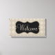Un motif classique d'argyle beige décore ce panneau de bienvenue élégant. L'image provient de l'art original.