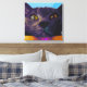 Impression en toile avec une face de chat rapprochée dans des couleurs vives.